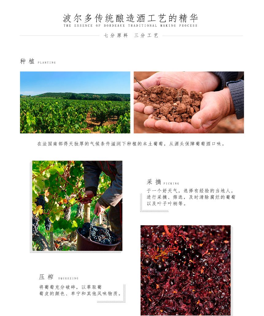 榮獲2019吉伯特&蓋拉德國際葡萄酒大賽 金獎原產地:法國-朗格多克級別:IGP年份:2018類型:干型葡萄品種:50%美樂,35%歌海娜,15%西拉酒精度:13.5%vol凈含量:750ml顏色:此款酒呈寶石紅色;酒香:淡淡的紫羅蘭香氣伴隨著香料的氣息,甜美又討喜;味蕾:入口后能明顯的感覺到成熟水果的浪漫果香,甜美柔和,余味中帶有輕微的香料味道。食物搭配:北京烤鴨、叉燒肉、燒鵝、烤乳鴿等搭配飲用。最佳適飲溫度:15-18℃建議醒酒時間:20-30分鐘