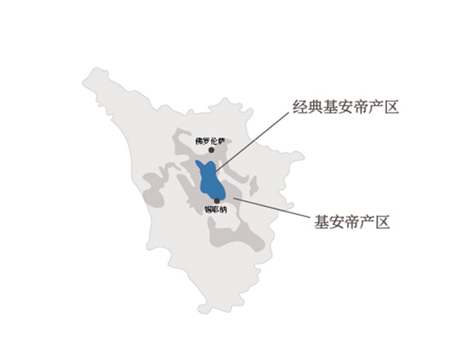 1716年,托斯卡納大公(Grand Duke of Tuscany)科西莫三世(Cosimo III)頒布法令,正式劃定了基安帝葡萄酒的官方認證產區范圍。這一處于佛羅倫薩與錫耶納之間的地理范圍也因此被稱為“科西莫邊界”。隨著基安帝葡萄酒的名聲進一步擴大,其產量已不能滿足日益增長的市場需求,科西莫邊界以外的鄰近地區也開始出產“基安帝”或者“基安帝風格”的葡萄酒。為了將二者區分開來,1932年,政府頒布了一項法規,將科西莫邊界內出產的基安帝葡萄酒稱作“經典基安帝”,而科西莫邊界外鄰近地區出產的“基安帝風格的葡萄酒”則被稱作“基安帝”。