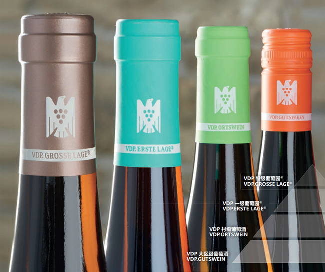 由于德國的官方分級體系在葡萄酒品質和葡萄園風土等方面的體現有所欠缺,VDP在1984年開始擬定更細致的葡萄酒分級制度,并在2012年完成修訂。這個分級和法國勃艮第的分級類似,以葡萄園的風土條件為標準,把葡萄園分成4個等級。