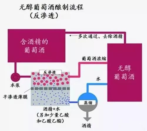 它同樣是按照葡萄酒酒的生產(chǎn)工藝釀造出來的、只不過是在裝瓶之前,利用只允許溶劑透過的半透膜,先將葡萄酒中的絕大部分酒精與其他物質(zhì)分開,再通過蒸餾的方式將酒精分離。